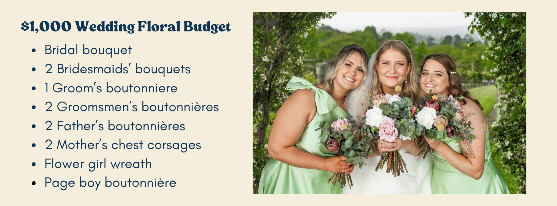 Here's a breakdown of what you can expect from your floral budget with us: